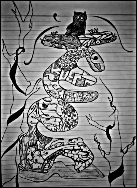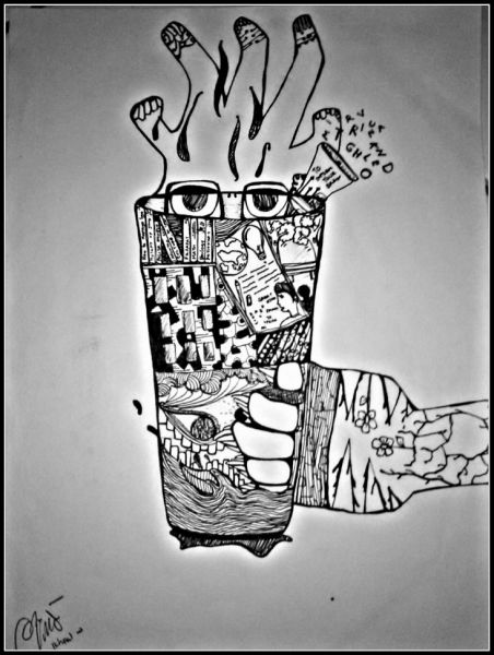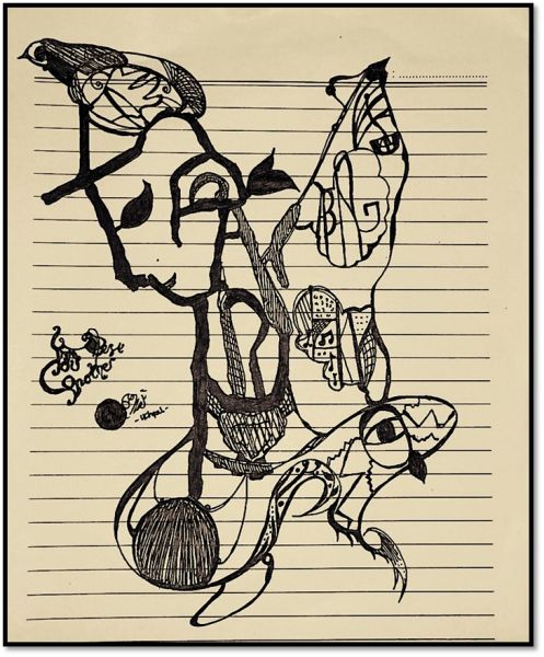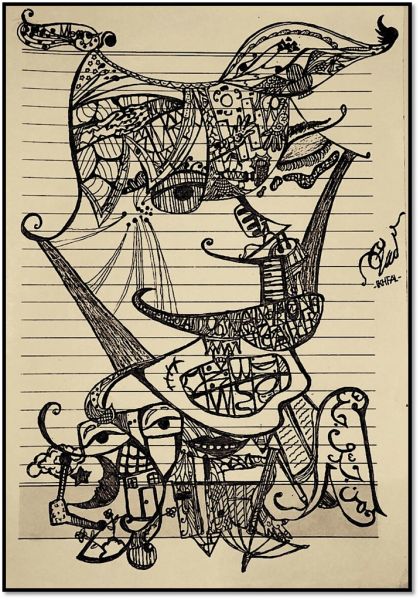 Ini hanya sebuah karya atau bisa dibilang hanya sebuah coretan-coretan nggak jelas yang dibuat menggunakan media kertas dan pulpen cair. Saat membuat coretan seperti ini harus dalam suasana atau kondisi tertentu, entah itu saat sedih, berduka, bahagia, terharu, senang, simpati dan perasaan yang lainnya. Banyak orang bilang coretan ini banyak filosofinya, ada juga yang bilang kaya gambar monster, manusia, dan ada juga yang bilang ini gambar yang abstrak. Kalau saya sendiri yang buat, hanya bisa menerima penilaian atau pandangan bagi siapa yang lihat, atau bahasa lainnya saya serahkan kepada pengamat gambar atau coretan saya ini. Sempet saya ditanya sama senior di tempat saya ikut organisasi kesenian di kampus, Gesbica. Saat saya sedang membuat coretan ini, saya ditanya “Yakin nggak kamu kalo semisal gambar kamu ini ada yang nawar 50 juta?” Astagaaa!