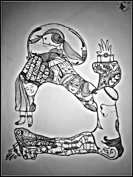 Coretan ini iseng dibuat sebelum shalat Jum’at berlangsung, tempatnya juga di masjid kampus. Coretan ini dibuat untuk sosok yang bener-bener ngasih banyak nasihat, semangat, senyum lagi bahkan suka membuat saya yang tadi punya putus asa, ngerasa nggak bisa apa-apa dan nggak punya siapa-siapa, tapi semenjak deket, semenjak suka share cerita tentang masalah masing-masing, hidup udah nggak ngerasa sendiri lagi. Akhirnya saya bikin, deh, coretan atau gambar seperti ini, buat sosok seorang tersebut. Makasih banyaak buat kamu! Nah yang lebih bikin semangat lagi pas gambar ini dijadiin displaypicture sama saya, ada yang bilang di chat room, “Gua suka gambar ini. Keren! Gua sablon, ya, dijadiin kaos.” Dari situ saya ngerasa apa ini emang passion atau style seni saya, ya? Nggak tau kenapa jadi suka juga, makanya pengin dilanjutin terus bikin coretan-coretan kaya gini.