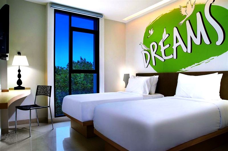 Masuk ke kamar, kamu akan terbawa suasana yang coba dihadirkan oleh hotel ini dengan wallpaper yang unik dan berbeda setiap kamar. Kamu bisa pilih jenis wallpaper mulai dari gambar kupu-kupu, kartun, quote-quote menarik seperti DREAMS, atau gambar abstrak dengan warna menarik. Menarik, kan!