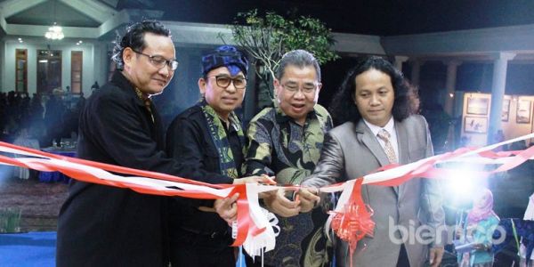 KOTA SERANG, biem.co – Perhelatan akbar seni rupa Banten Biennale #01 dengan tema ”Gawe Nagari Baluwarti” resmi digelar mulai malam tadi, Sabtu (09/09/2017). Pembukaan kegiatan ini berlangsung di Museum Negeri Provinsi Banten atau pendopo gubernur Banten lama yang terletak di seberang alun-alun kota Serang.