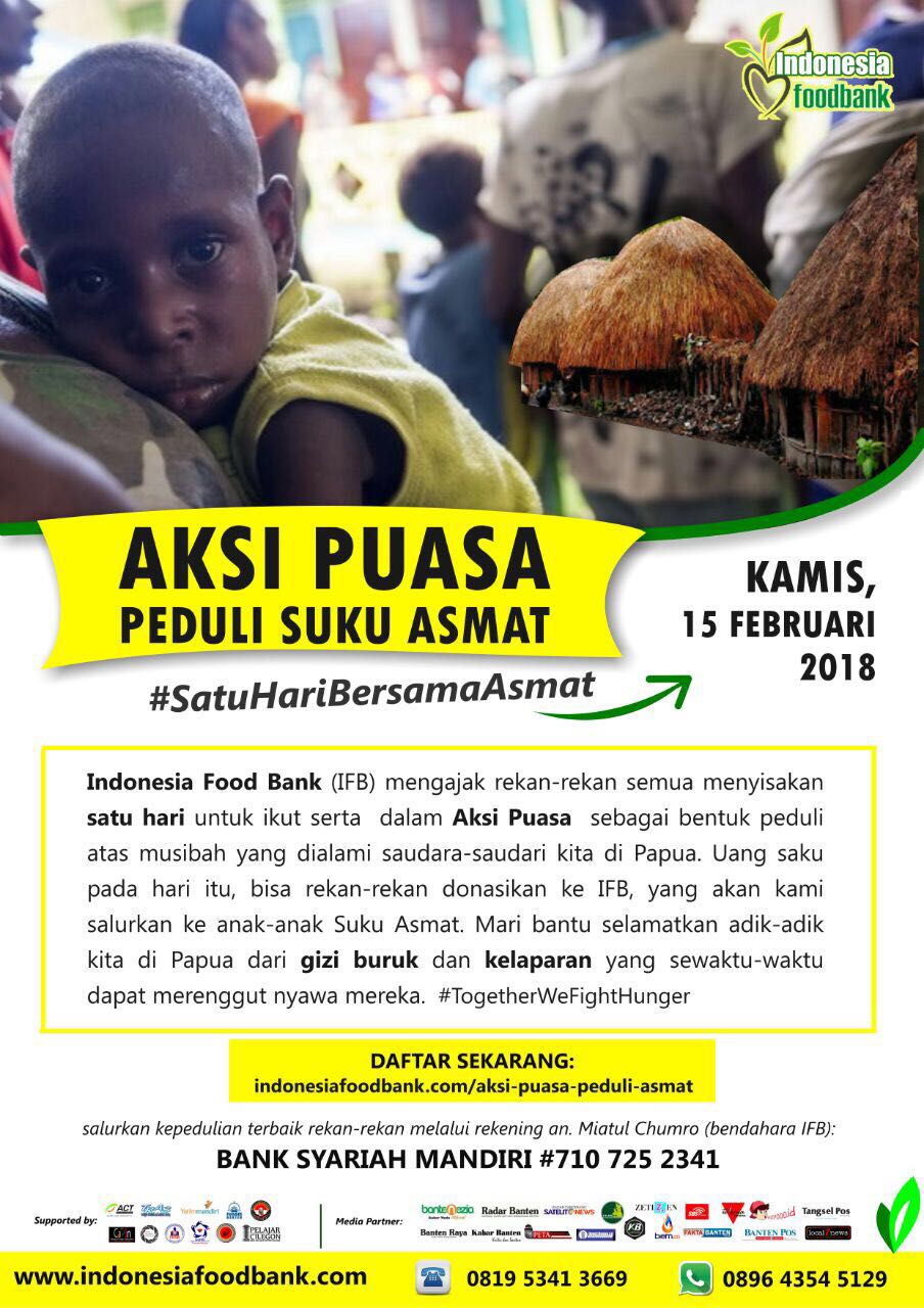 KOTA SERANG, biem.co – Indonesia Food Bank (IFB) berinisiatif menyelenggarakan Aksi Puasa Peduli Suku Asmat di Papua serentak secara Nasional, Kamis (15/02).