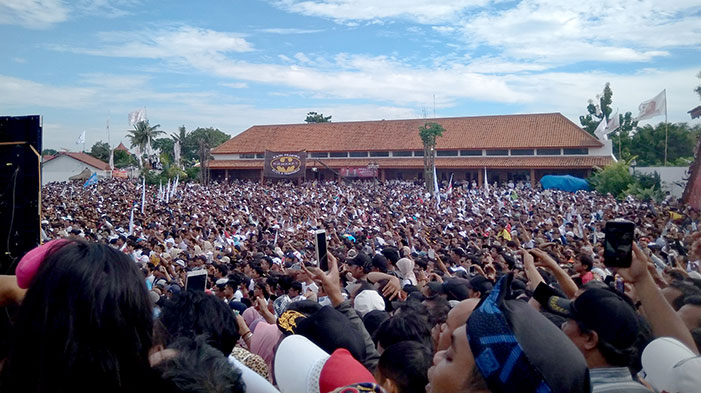 KOTA SERANG, biem.co – Masyarakat Banten antusias sambut kedatangan Prabowo Subianto. Dari berbagai elemen, terlihat begitu semangat menanti kedatangan Capres Nomor 02 tersebut, untuk memberikan pidato kebangsaan.
