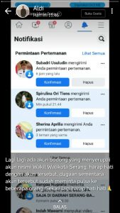 “Akun Facebook Pak wakil ini mungkin sudah kali kedua ada yang menggunakan fake account atau akun palsu dari kepala daerah atau wakil kepala daerah yaitu Pak Wakil Wali Kota Serang,” tukasnya.