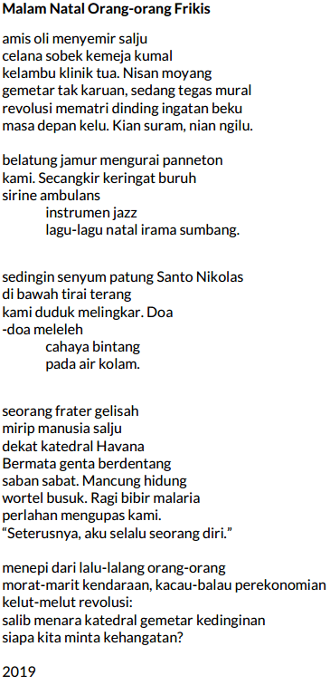 malam kudus, pepat api pada pucuk cemara-cemara