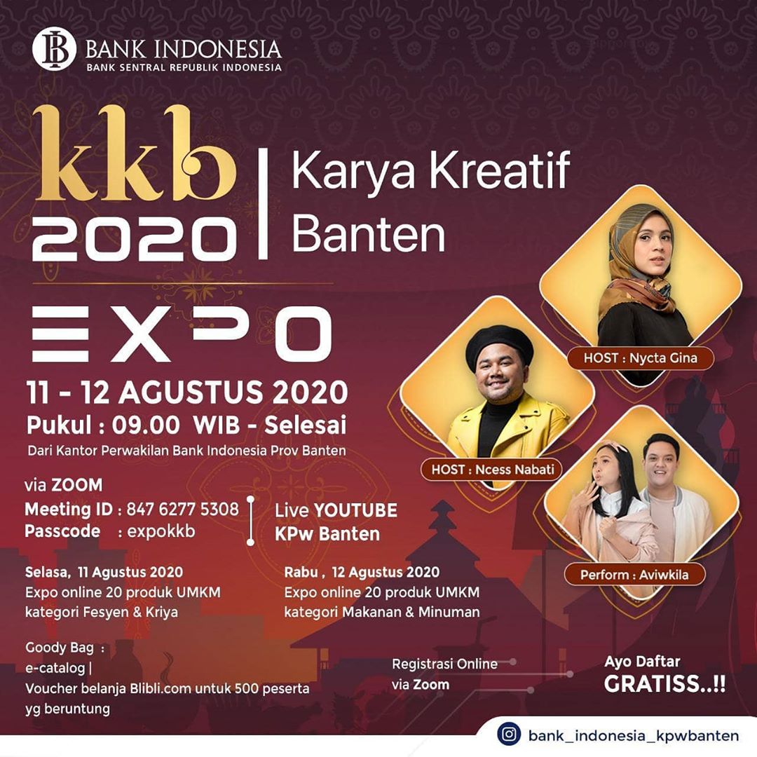 KOTA SERANG, biem.co – Sebagai upaya memperkenalkan dan menumbuhkan kembali gairah UMKM Banten di tengah pandemi Covid-19, Kantor Perwakilan (KPw) Bank Indonesia (BI) Provinsi Banten akan menggelar expo Karya Kreatif Banten (KKB) 2020, yang akan dilaksanakan pada tanggal 10 sampai 12 Agustus 2020, secara daring.