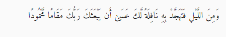 Wa mina allaili fatahajjad bihi naafilatallaka ‘asaa an yab’atsaka robbuka maqooman mahmuuda