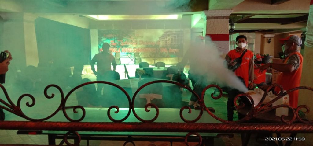 Guna mengantisipasi penyebaran Covid-19, Pemerintah Kabupaten (Pemkab) Serang melalui Satuan Tugas (Satgas) Covid-19 bekerjasama dengan Kajama dan Relawan Covid-19 Dr. Jack melakukan Giat Desinfeksi dan Prokes di Area pariwisata dan perhotelan kawasan Anyer dan Cinangka pada Sabtu, 22 Mei 2021.