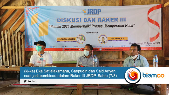 Demikian disampaikan Anggota KPU Provinsi Banten Eka Satialaksmana pada acara Raker III Jaringan Rakyat untuk Demokrasi dan Pemilu (JRDP) yang dihelat di Situs Cihunjuran, Kabupaten Pandeglang, Sabtu 7 Agustus 2021.