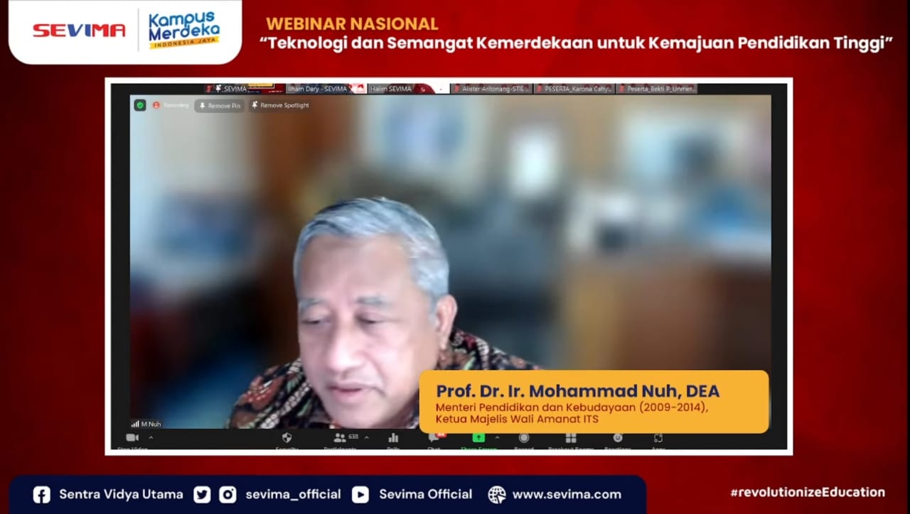 Hal ini diungkapkan oleh Prof. Mohammad Nuh, Ketua Dewan Pers sekaligus Menteri Pendidikan dan Kebudayaan Kabinet Indonesia Bersatu Jilid II, dalam Webinar SEVIMA pada Selasa (24/08) sore. Hal ini pula yang menurutnya menjadi penyebab pendidikan mengalami learning loss (kegagalan belajar) yang luar biasa di era Pandemi.