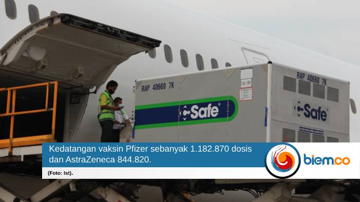 JAKARTA, biem.co – Target vaksinasi untuk rakyat Indonesia memiliki kekebalan terhadap Covid-19 terus digenjot oleh pemerintah. Merealisasikan itu, kini Indonesia Kembali menerima kedatangan vaksin tahap 97 dan 98 pada Jumat (22/10/2021). Vaksin yang mendarat yaitu vaksin Pfizer sebanyak 1.182.870 dosis dan AstraZeneca sejumlah 844.820 dosis.